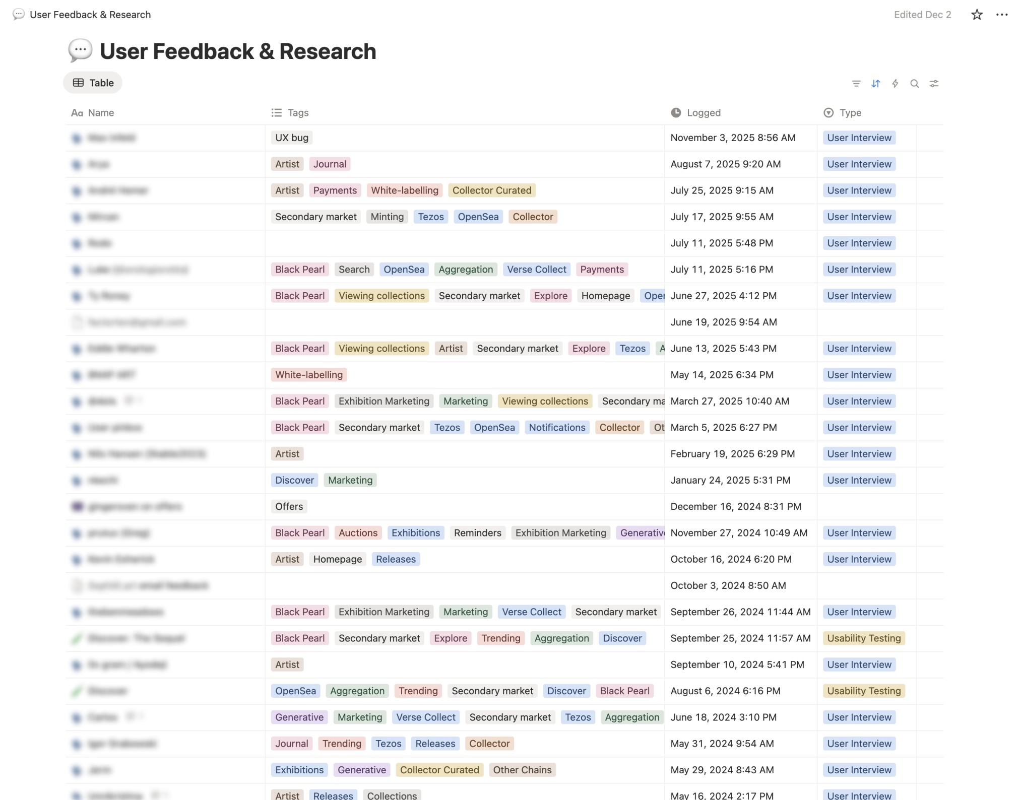 We ran weekly interviews and monitored community feedback through Discord and Twitter. I led UX improvements across flows, usability and visual clarity.